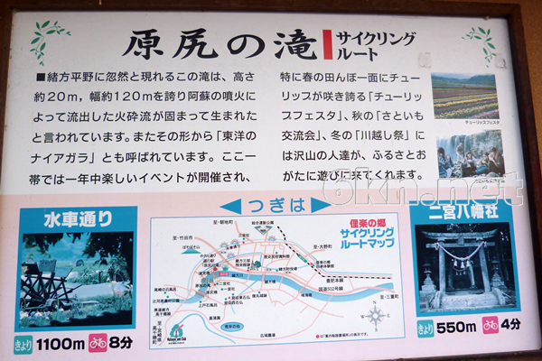 原尻の滝 (はらじりのたき) 2012年12月23日2014年12月10日 お出かけ 大分 ・道の駅原尻の滝 - Wikipedia ・原尻の滝 - Wikipedia 「道の駅 原尻の滝」の裏側に、原尻の滝があり見れます。 原尻の滝 地元では、「東洋のナイアガラ」「大分のナイアガラ」とかよんでいるそうです。 まあ、規模感は違いますけど、それらしい雰囲気なのはそうかなぁとは思いました。 滝見の吊り橋 後ろには「滝見の吊り橋」があるので、その中央から滝川をみれば、下に降りなくても見れるかも・・・。 水車 お店みたいでしたが、閉まってました。 スポンサーリンク 関連記事 神戸市役所の展望ロビーがお勧め 【無料】 2013年9月24日2018年2月24日 金毘羅(こんぴら)参り – 御本宮まで 2014年1月4日2014年12月9日 善通寺参り 2014年1月4日2014年12月9日 奈良名物「柿の葉寿司」 2014年12月9日 白松がモナカを食べてみる 【白松がモナカ本舗】 2015年3月14日 仙台牛のミンチカツ 2015年3月14日